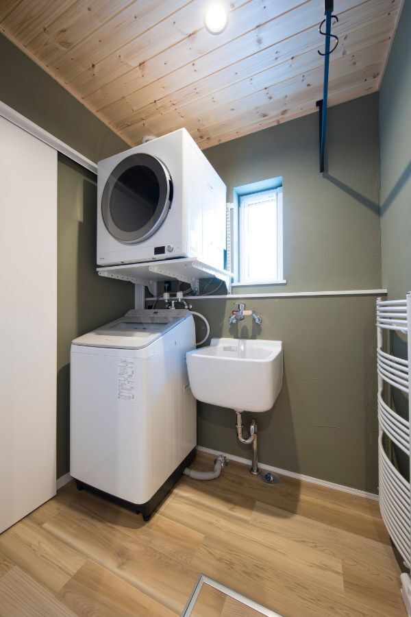脱衣室には「乾太くん」と「スロップシンク」を設置。