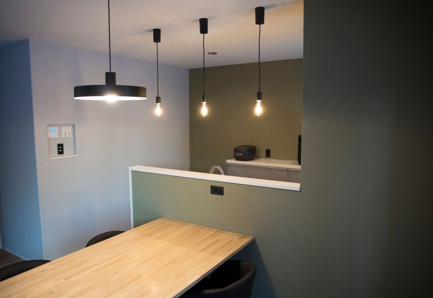 さらにモスグリーンの塗壁の質感が