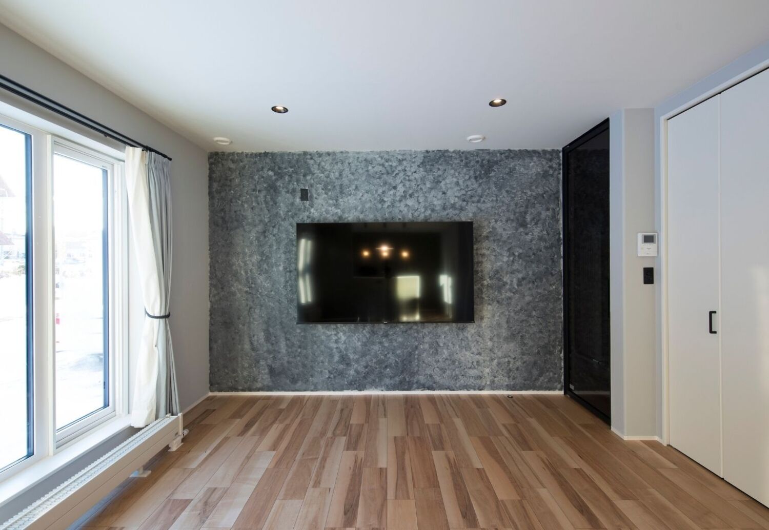 テレビ背面の塗壁は唯一無二の表情で
